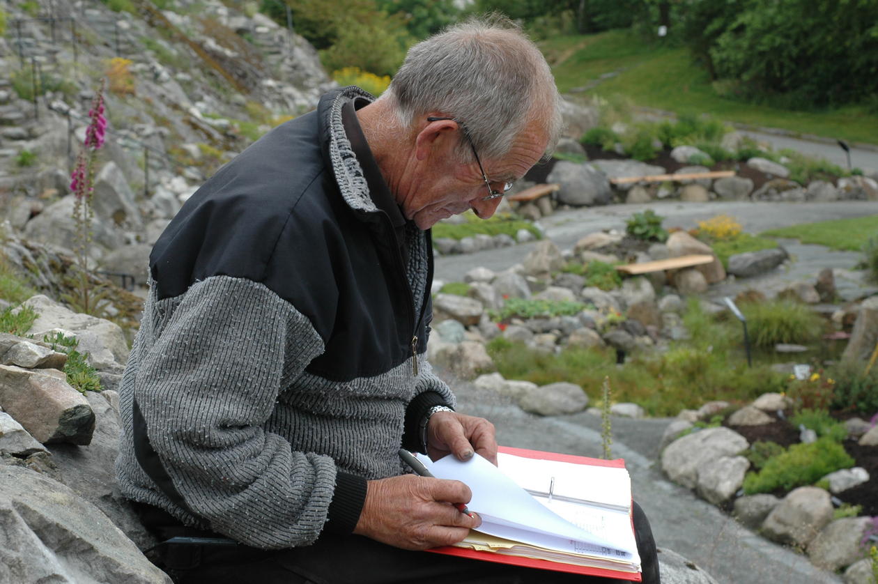 Faktisk har ikkje gartnarveteran Jon Kleveland vore så flink til å bruke hanskane sine. Men derimot har han flittig brukt sitt rutinerte ”steinauge” og handlag når han dei 10 siste åra har bygd opp fjellhagen og steinmurer elles i Arboretet og Botanisk hage.
