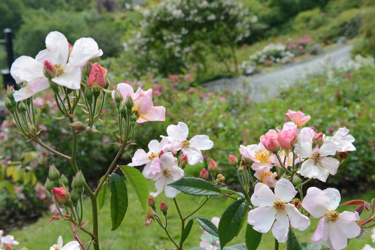 Blomstringene i Rosariet startet tidlig slik de fleste andre plantene gjorde denne våren. Først ute var som vanlig villrosene (Rosa sericea) allerede i slutten av april, og det er rekordtidlig.