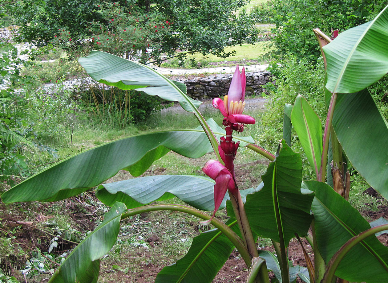 Musa formosana kommer opprinnelig fra Taiwan og i vår samling er dette en mindre plante på ca. 1 m. Om ikke bladverket er så imponerende har den til gjengjeld en stor flott blomst, og det er første gang den blomstrer utendørs i Arboretet.